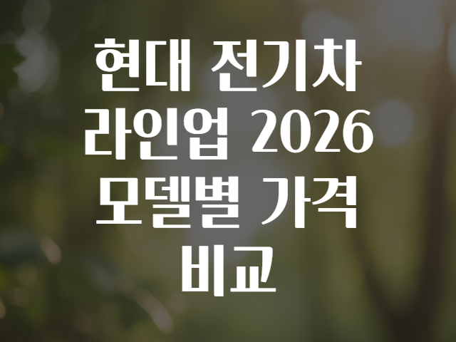 전기차를 구매하려는 분들이 가장 궁금해하는 질문, 바로 "2026년에 현대 전기차는 어떤 모델이 있고, 가격대는 어떨까?"일 텐데요.📊 최근 국내 전기차 시장이 폭발적으로 성장하면서, 다양한 모델이 출시되고 또 새롭게 업데이트되고 있습니다. 특히 현대자동차는 전기차 라인업을 빠르게 확장하며 소비자들의 선택 폭을 넓혀주고 있죠. 그렇다면 내게 딱 맞는 전기차는 무엇일까, 가격은 어떻게 비교해야 할까 함께 살펴볼까요? 🌟
